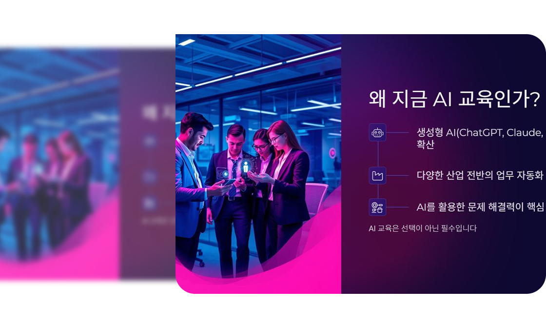 여러 가지 GPT 프롬프트 활용법도 배워 실무에서 바로 적용 가능한 능력을 기를 수 있었습니다.